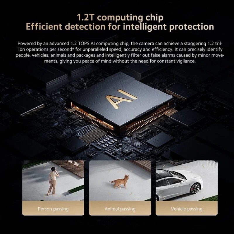 A 1.2 TOPS AI computing chip allows the BW500 to perform 1.2 trillion operations per second, offering unmatched speed, precision, and efficiency. This chip enhances the camera's ability to accurately detect people, vehicles, animals, and packages, minimizing false alarms.