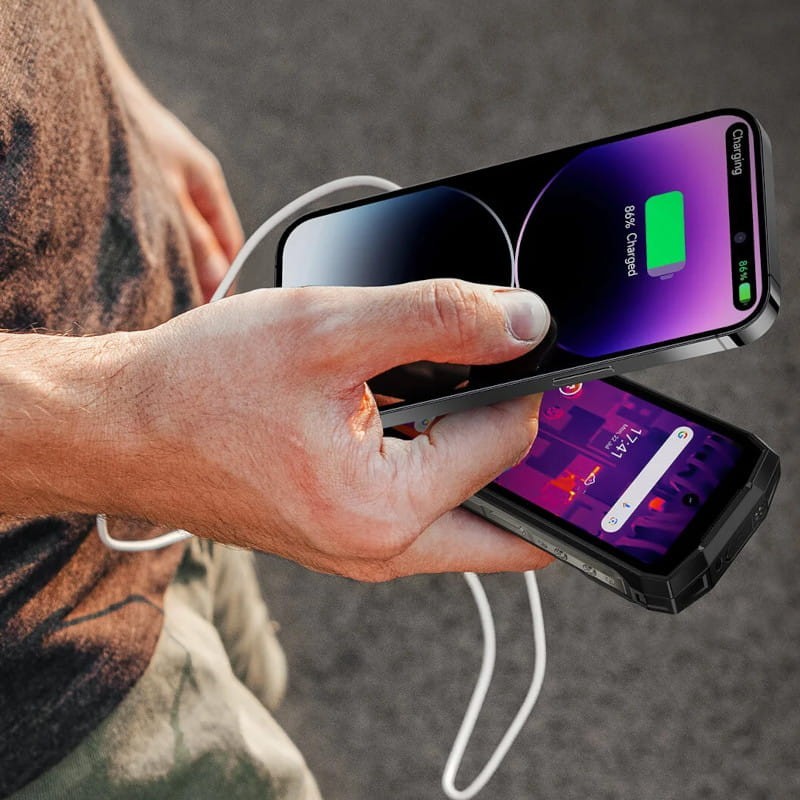 4.7" HD+ Display – IP68, IP69K & MIL-STD-810H Water, Dust & Shock Resistance – LED Flashlight – Emergency Light – MediaTek Dimensity 6300 Processor – 8GB RAM (expandable) – 256GB Storage – 50 MP Rear Camera – FLIR Thermal Camera – 32 MP Front Camera – Multiple Sensors – 5G Networks – 6200 mAh Battery – Fast Charging – Reverse Charging – Black