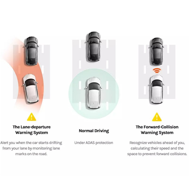 Xiaomi 70mai A500s er miklu meira en bara öryggismyndavél á mælaborðið í bílnum þínum. Það er innbyggt háþróað aðstoðarkerfi fyrir ökumann (Advanced Driver Assistance System). Þessi tækni skynjar akgreinar og fjarlægð í næsta bíl og varar þig við. S.s. aðstoðar þig við að forðast slys.