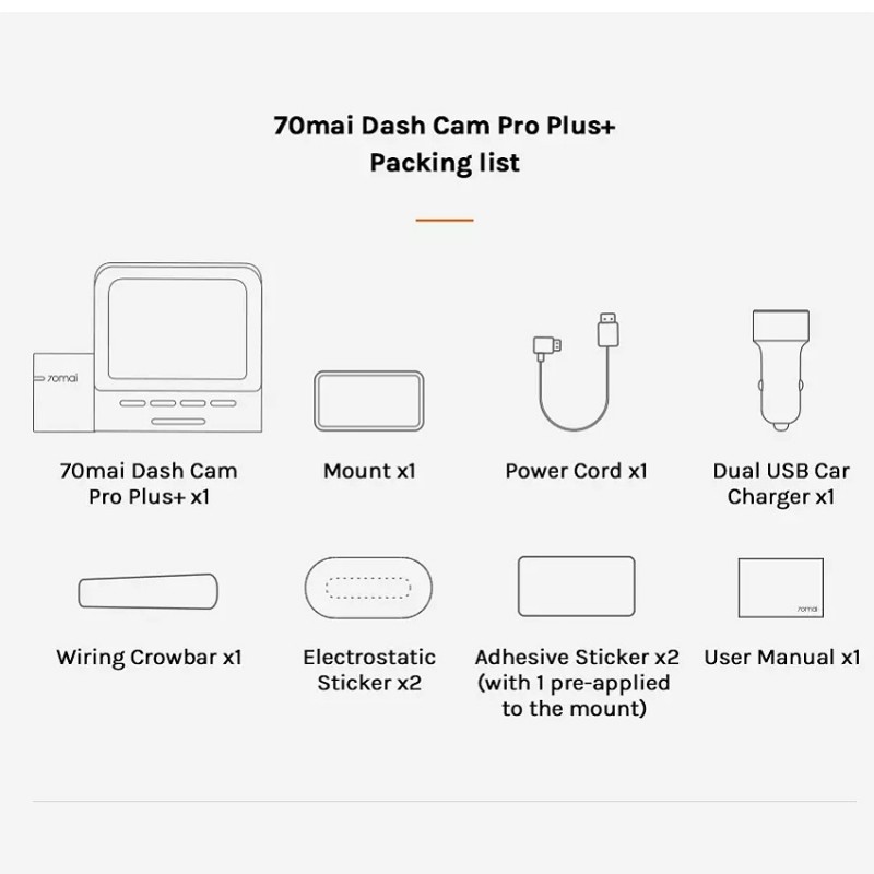 Tæknilýsing á Xiaomi 70mai A500s Dash Cam Pro Plus+ GPS: