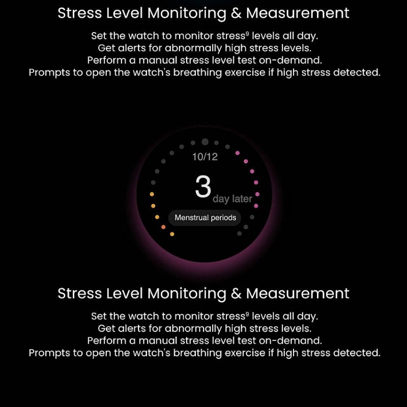 Auk nákvæmari gagna kynnir nýi BioTracker 3.0 PPG skynjarinn í GTR 3 Pro nýja gagnlega heilsuaðgerð: öndunartíðni skynjun, sem þú getur auðveldlega tekið með einni snertingu. Það bætir líka streitustigsvöktun, sem fer nú fram sjálfkrafa og lætur þig vita þegar streitustigið er of hátt. Þannig að ef þú þarft að slaka á geturðu gripið til nýju öndunaræfinganna sem fylgja með.
