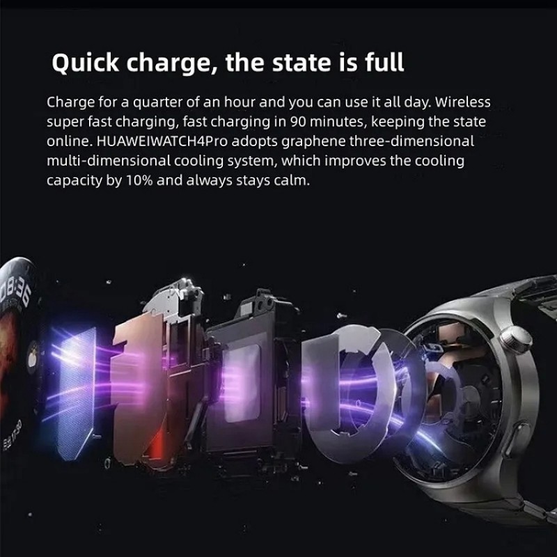 Auk þess gefur 15 mínútna þráðlaus hraðhleðsla næga rafhlöðu í heilan dag og full hleðsla tekur aðeins 60 mínútur. Þetta úr er með 3D grafen hitaleiðnikerfi, til að auka hitaleiðni um 16%.