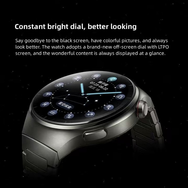 1,5 tommu LTPO AMOLED skjárinn á Huawei Watch 4 Pro er með ofurþröngum ramma og yfir 72% hlutfalli skjásins, sem er sérstaklega hannaður til að bjóða upp á mikil sjónræn þægindi.