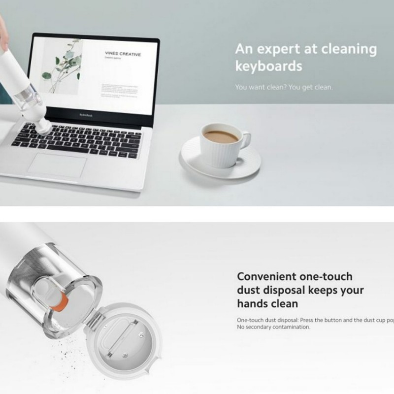 Auðvelt er það þrífa ryksuguna sjálfa. Ýtt er á einn takka til að opna og tæma rykhólfið og HEPA síuna er hægt að þvo. Hún nær að hreinsa 99.97% alls ryks, allt niður í 0.3μm.